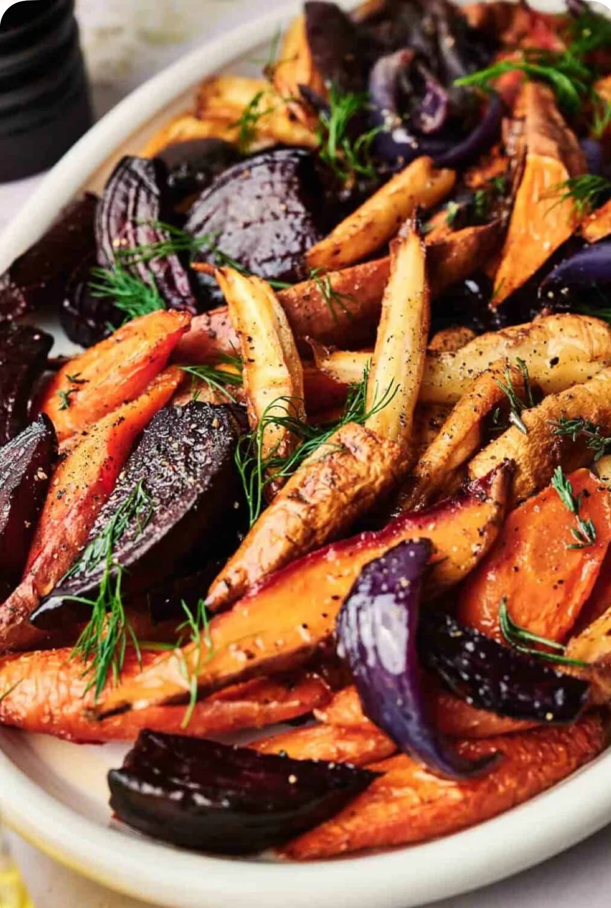 Chop 2 carrots, 1 beet, and 1 sweet potato into bite-sized cubes. Toss with 2 tablespoons olive oil, 1 teaspoon sea salt, black pepper, and 1 sprig of rosemary (or ½ teaspoon dried).